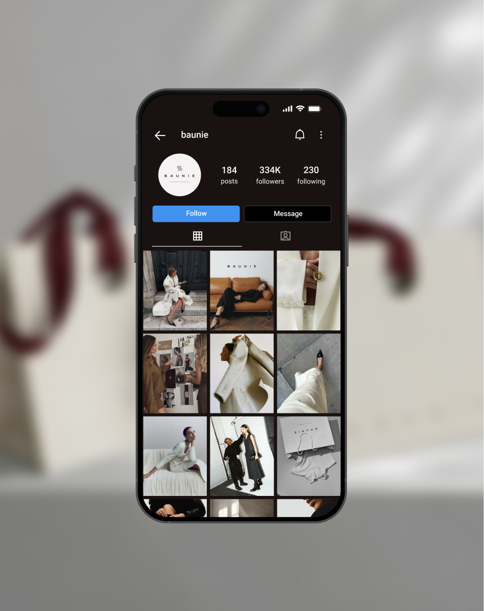 PUSH developed three distinct brand identity concepts, each reflecting a different interpretation of Baunie’s vision, positioning, and personality. This allowed the founder to see the brand from multiple angles before making a strategic decision.
